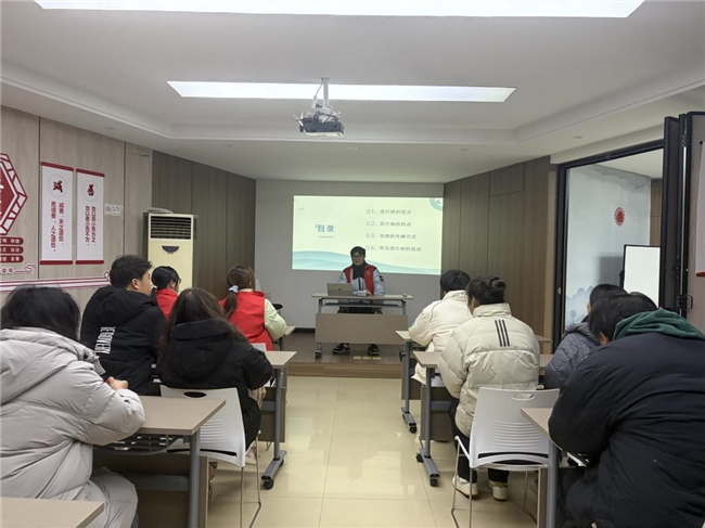 2026年1月13日上午九点半,南通大学杏林学院健康同路人实践团队在朝晖社区党群服务中心进行了预防流行性疾病的健康主题宣讲。团队由15名成
