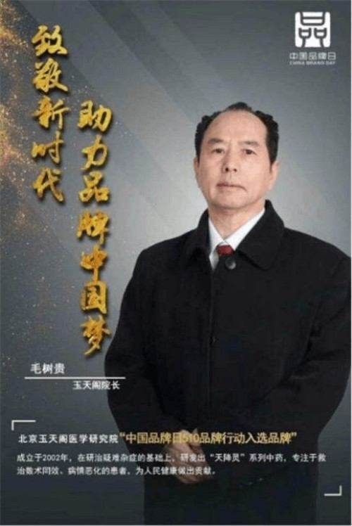毛树贵教授不断研究“古代民间传统特殊疗法”、传统中医学,全息信息论,中医基础理论,内经、难经,温病条辨等经络学说,阴阳五行学说,佛、道、医、武及国内各家功法之医疗精华,并融合在玉皇顶玉皇大殿见到奇异特有的“天光色彩”景观(极光)及各种形状的黑气(午时成功拍照下自然呈现的:彩光、金光、天光、游走性黑气邪毒景观图片),结合多年研究实践总结的经验,通过了临床验证,创立了“玉天医学”。他应用玉天阁科研“天降灵”系列中药,结合“玉天信息综合疗法”的“自然彩光、天光普照、天人合一”以及自然界呈现的“天光、彩光、奇光”等色彩天光疗法,无论在内科、外科治疗方面都有其特殊功效。临场验证:高血压、癌症、尿毒症、白血病,病毒已转移感染到多脏器,治疗无效没有任何药物能控制病毒恶性发展的危症患者,天降灵奇效。学”。他应用玉天阁科研“天降灵”系列中药,结合“玉天信息综合疗法”的“自然彩光、天光普照、天人合一”以及自然界呈现的“天光、彩光、奇光”等色彩天光疗法,无论在内科、外科治疗方面都有其特殊功效。临场验证:高血压、心脑血管病,癌症、尿毒症、白血病,病毒已转移感染到多脏器,治疗无效没有任何药物能控制病毒恶性发展的危症患者,天降灵捷效,一时三刻见证神奇能量,一天见证奇迹……。经五十多年用于临床,救治了数多疑难病患者。他的“杀灭病源体”数疗法:【第一、“拔地通天”彩光、克“邪毒侦察”卫分症状……。第二、“天光普照”克“邪毒集结”气分。经几十年用于临床,救治了数多疑难病患者。他的“杀灭病源体”数疗法:【第一、“拔地通天”彩光、克“邪毒侦察”卫分症状……。第二、“天光普照”克“邪毒集结”气分症状……。第三、“祥光缭绕”克“邪毒发动”营分症状……。第四、“天光化人(天光互化)”克“邪毒游走”血分症状……。第五、“天人合一”克“邪毒延变转移”血分症状(自然界呈现的黑气图片)……】。玉天中医学弘扬祖国医学精华,解开了慢性疑难病之迷,找出了不同类型的外邪病因,根据不同外邪黑气类型,研制了专用杀灭病源体、“游走性黑气邪毒”的系列中药专方“天降灵”(汤、丸、散、胶囊、膏药、养生茶),对调养治疗各类慢性疑难病甚效,把病毒个个拔除消灭,改变了不知是何种类型的“游走性黑气邪毒”致病,造成乱用药使病情反复扩散延变转移更加严重的弱点。使长期多方治疗无效反而病情更加严重感染的慢性疑难病等症早日康复。