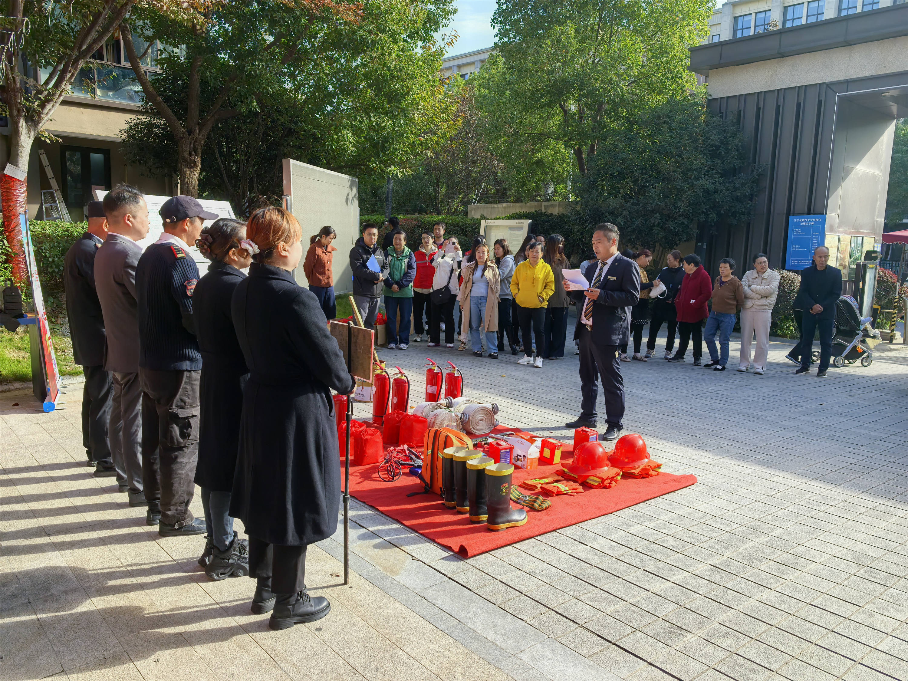活动伊始,世茂梦享家物业团队率先开展消防演练,模拟小区内突发火情的应急处置流程。物业工作人员迅速启动消防警报、组织人员疏散、操作消防设备进行初期灭火,整个演练过程紧张有序,为现场居民展示了专业规范的消防应急操作流程,让大家直观了解火灾发生时的正确应对步骤。
