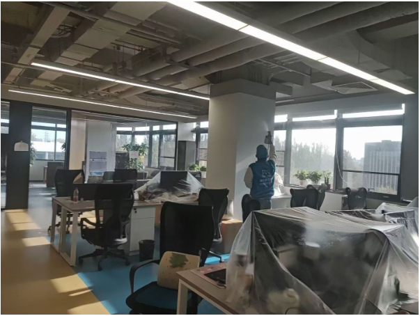 与传统产品的本质区别: · 无需光照条件,全天候持续分解 · 绝不产生二次污染 · 对办公家具零损伤,保护企业资产 · 作用更彻底,效果更持久 专业治理流程:达美盛办公室治理实践 生态美家为达美盛办公室提供了科学严谨的治理流程,确保从检测到治理的每个环节都精准无误。 科学治理流程: · 专业检测评估:使用国际先进设备对办公室内各区域进行全方位检测,确定甲醛浓度和污染源分布 · 定制治理方案:根据检测结果和办公室空间布局,量身定制综合治理方案 · 精细施工作业:采用专业设备,将纳米级治理药剂均匀覆盖在所有污染源表面 · 第三方验收:治理后邀请具有CMA资质的第三方检测机构进行验收