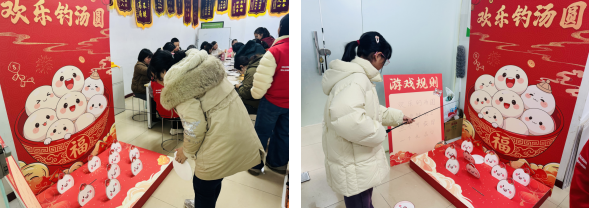 在趣味互动环节,“欢乐钓元宵”游戏备受居民喜爱。大家手持特制鱼竿,凝神专注瞄准目标,在规定时间内比拼技巧与耐心,成功钓取两枚“元宵”即可兑换精美礼品。居民们踊跃参与、相互鼓劲,在轻松有趣的游戏中拉近了邻里距离,现场气氛热烈、其乐融融。
